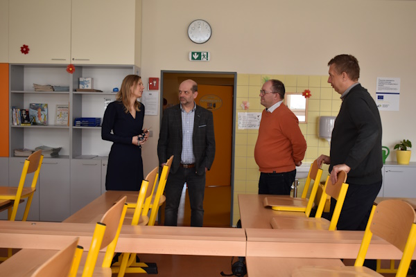 Součástí programu bylo i setkání s redaktory školního časopisu Šotek, kteří si pro vzácné hosty připravili krátký rozhovor. Nechyběla ani krátká procházka venkovním areálem školy, kde se hosté seznámili s možnostmi trávení volného času našich žáků.