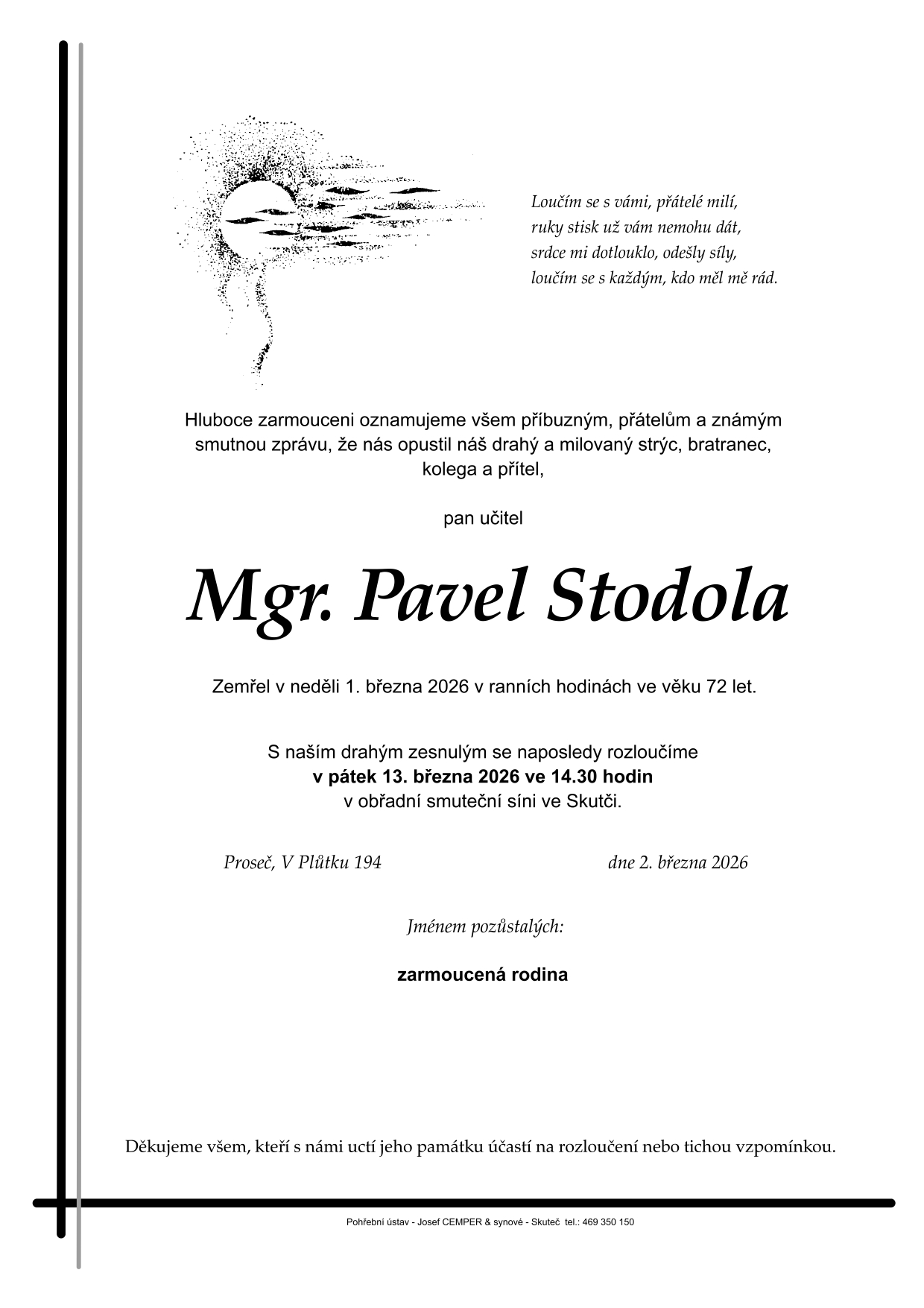 oznamujeme všem, že nás opustil náš drahý kolega Pavel Stodola.