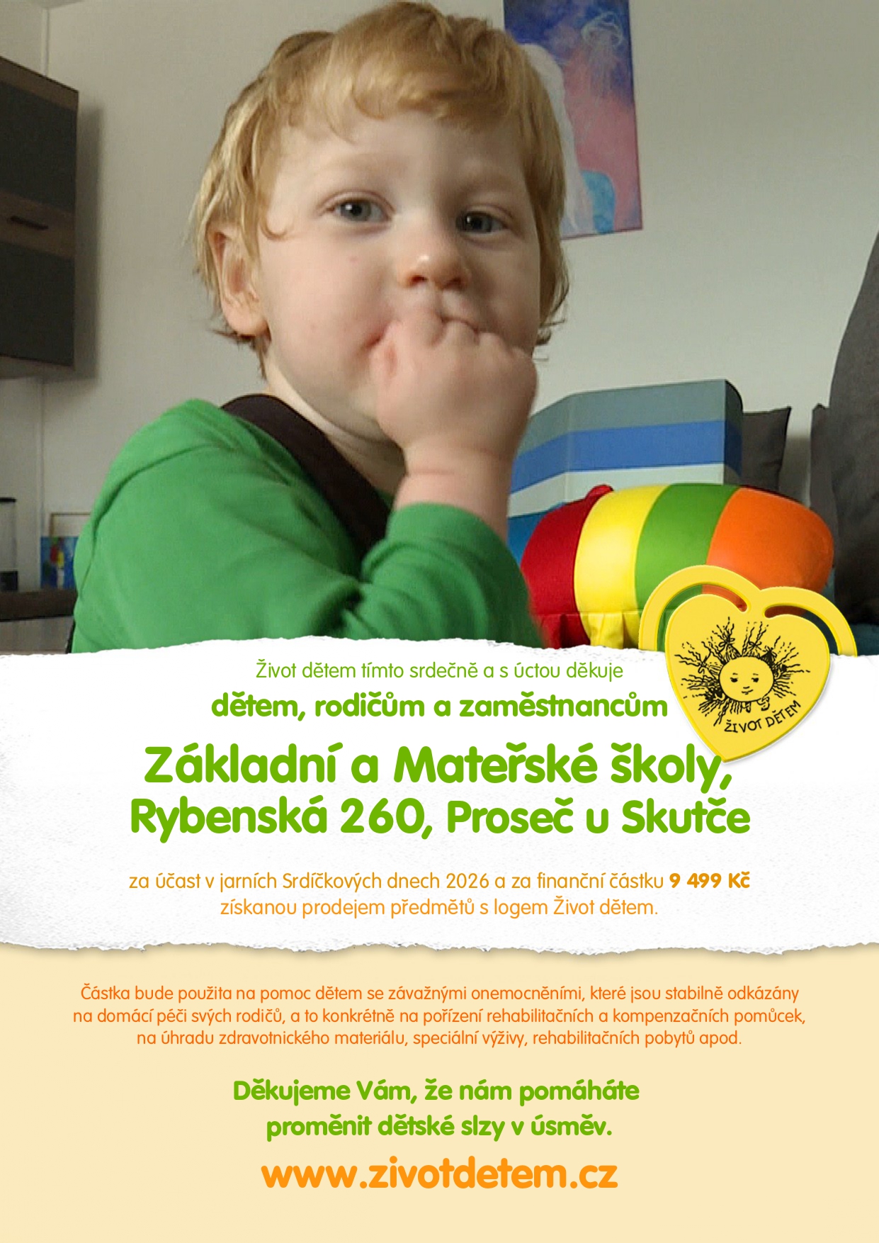 Naši parlamentáři se opět postarali o organizaci sbírky Život dětem. 1. dubna připravili prodejní místa na prvním i druhém stupni, kde si žáci i zaměstnanci školy mohli zakoupit reklamní předměty a podpořit tak vážně nemocné děti. Děkujeme všem, kteří se do sbírky zapojili.