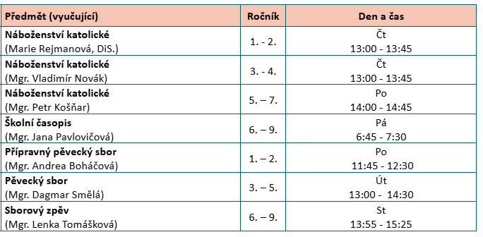 Nepovinné předměty se pro žáky, kteří si je vyberou, stávají povinnými a jsou z nich hodnoceni na vysvědčení. Nepovinné předměty se začnou ve školním roce vyučovat dle tohoto seznamu.