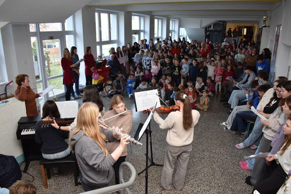 V pátek 19. prosince 2025 se na hale druhého stupně uskutečnilo tradiční společné zpívání vánočních koled, které se již neodmyslitelně řadí k závěru kalendářního roku na naší škole. Setkání se zúčastnili všichni žáci i zaměstnanci školy, kteří se společně naladili na blížící se vánoční svátky. Hala se zaplnila zpěvem známých koled, dobrou náladou a slavnostní atmosférou. Společné chvíle byly příjemným zastavením v předvánočním shonu a připomněly, že Vánoce jsou především o setkávání, sdílení a radosti. Po společném zpívání se žáci odebrali do svých kmenových tříd, kde na ně čekala malá vánoční besídka. Nechybělo rozdávání dárečků, povídání, drobné pohoštění ani chvíle pohody strávené se spolužáky a třídními učiteli.