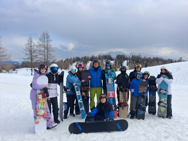 Po včerejším klidném rozjezdu se nám dobře vstávalo, sluníčko svítilo a sníh se jen třpytil. Po výborné snídani jsme vyrazili na svah a tam vydrželi až do oběda. Dopoledne bylo bohužel ve znamení úrazů, takže jsme ošetřili rozražené koleno a zlomenou ruku. Odpolední program byl nadále ve znamení lyžování a snowbordování, kochali jsme se krásou hor a užívali slunečních paprsků. Po večeři následoval opět společný program, který byl zábavný a moc jsme si ho užili.